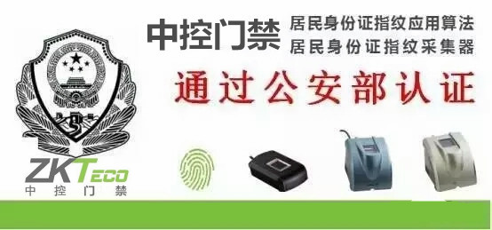 中控門禁“居民身份證指紋算法及采集器”通過公安部認證