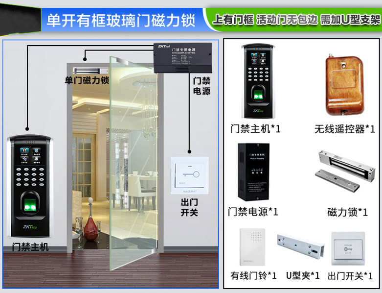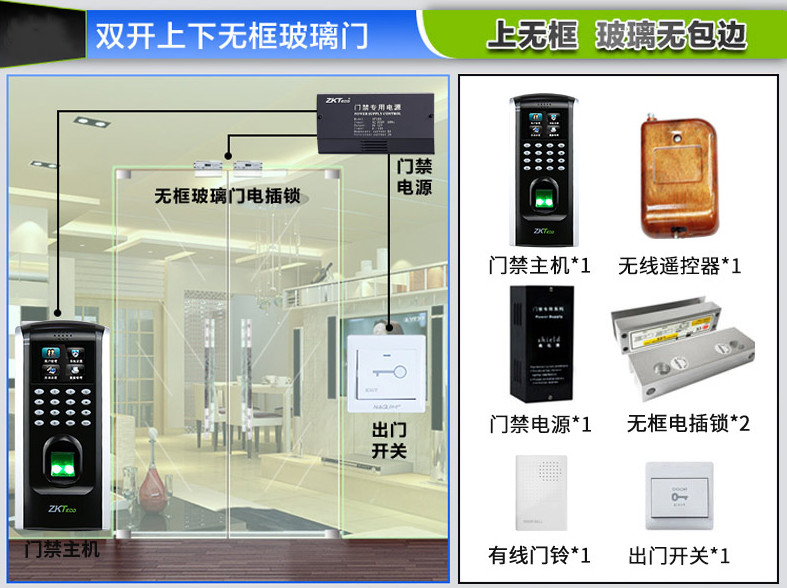 玻璃門安裝門禁 不一樣的玻璃門安裝門禁的要求都不一樣。用F7Plus門禁機(jī)來舉個(gè)例吧~!