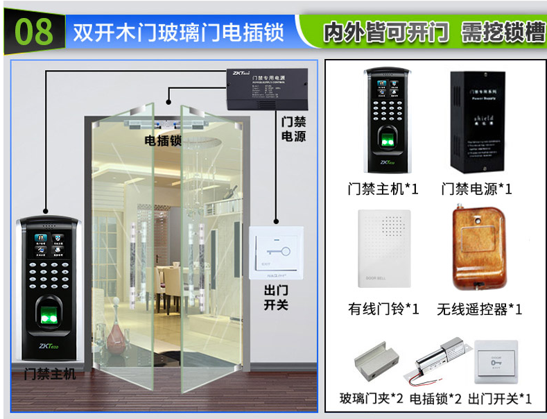【內(nèi)外皆可開】單開有框玻璃門是需要挖槽 安裝電插鎖的。