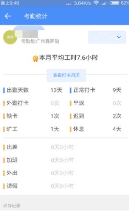 5、在統(tǒng)計界面也可以看到自己的考勤情況