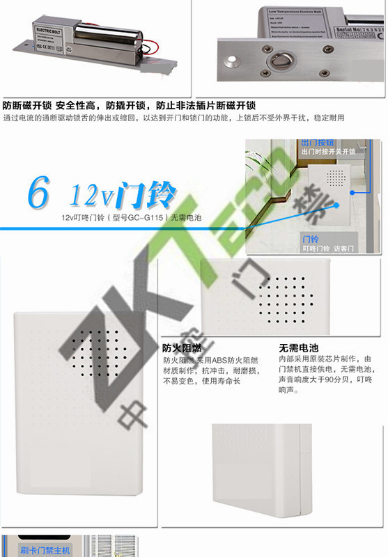 F7接線都按照標準辦公室門禁設(shè)備要求,可直接兼容原先布線和電鎖、供電電源等,直接將F7換下感應(yīng)或密碼門禁即可,僅需1小時左右。