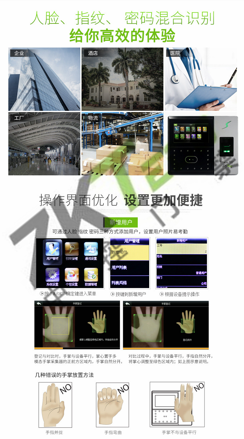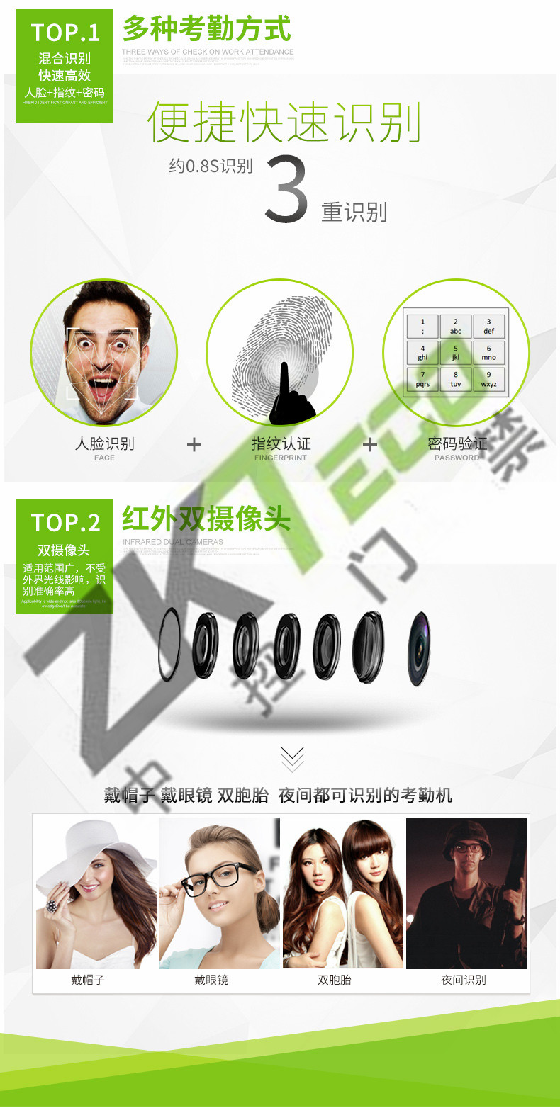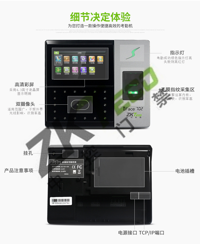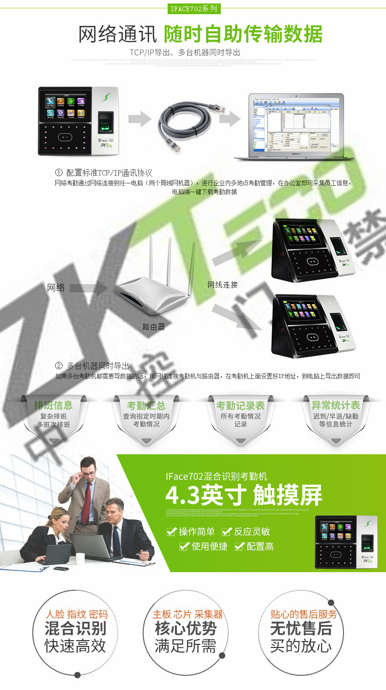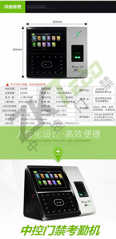 中控面部考勤機(jī)iface702P 人臉指紋識(shí)別門禁
