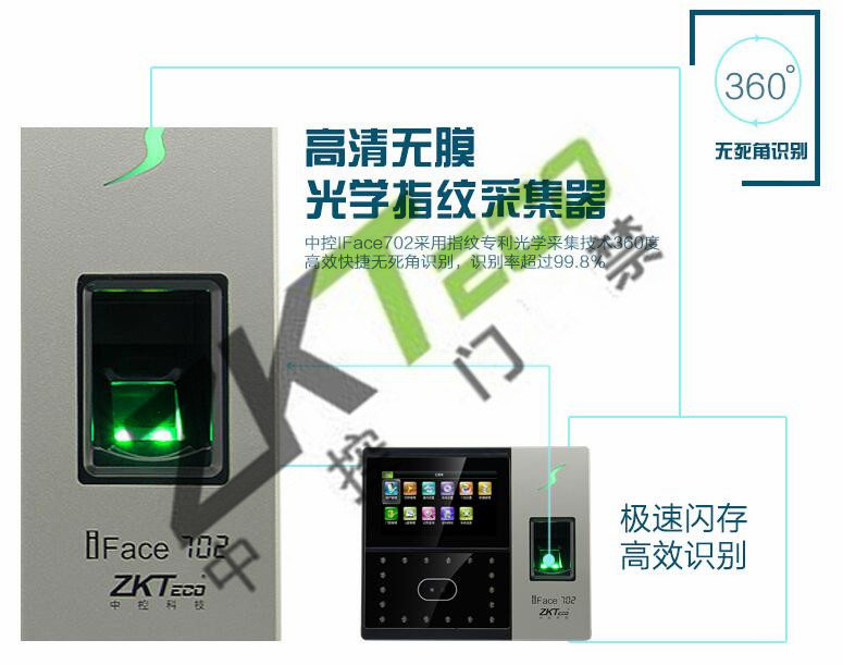 中控面部識別門禁iface702 指紋考勤打卡機