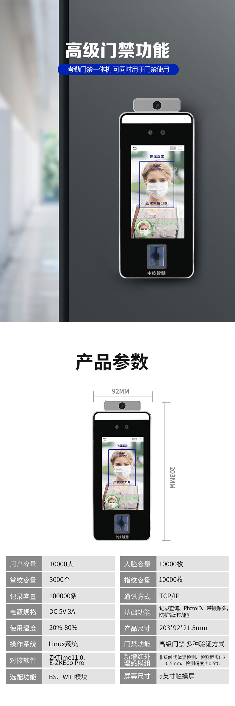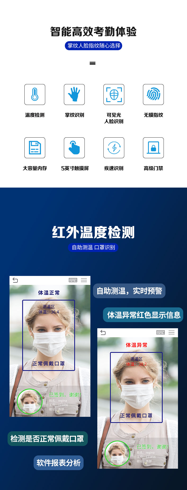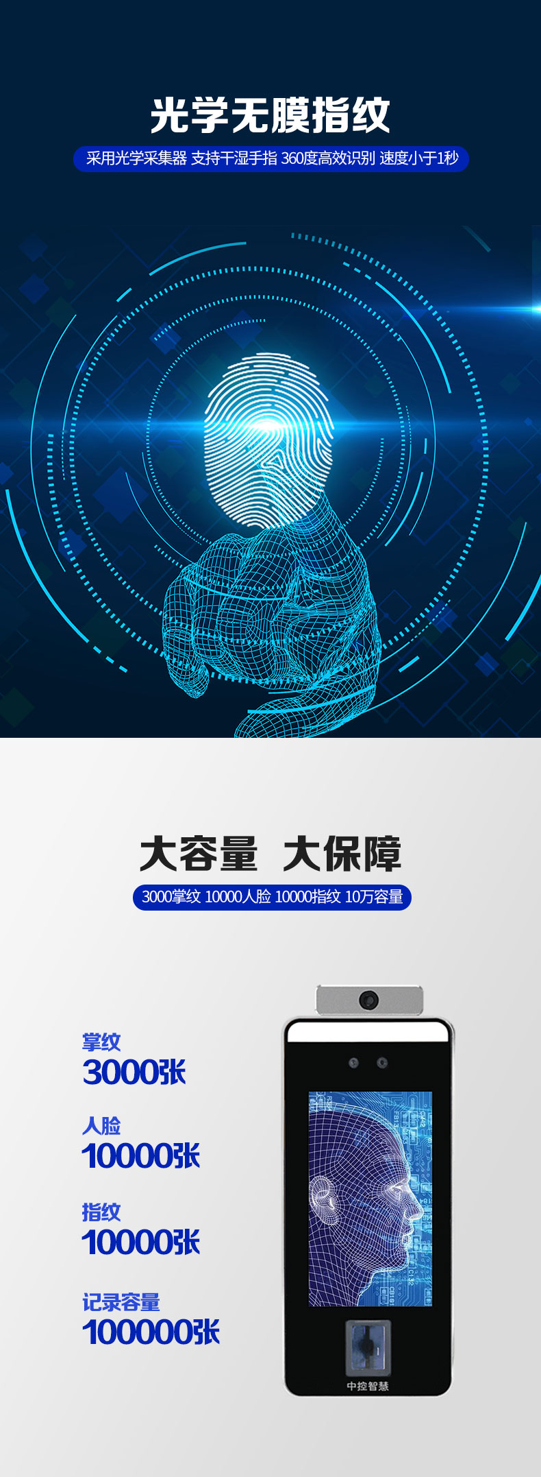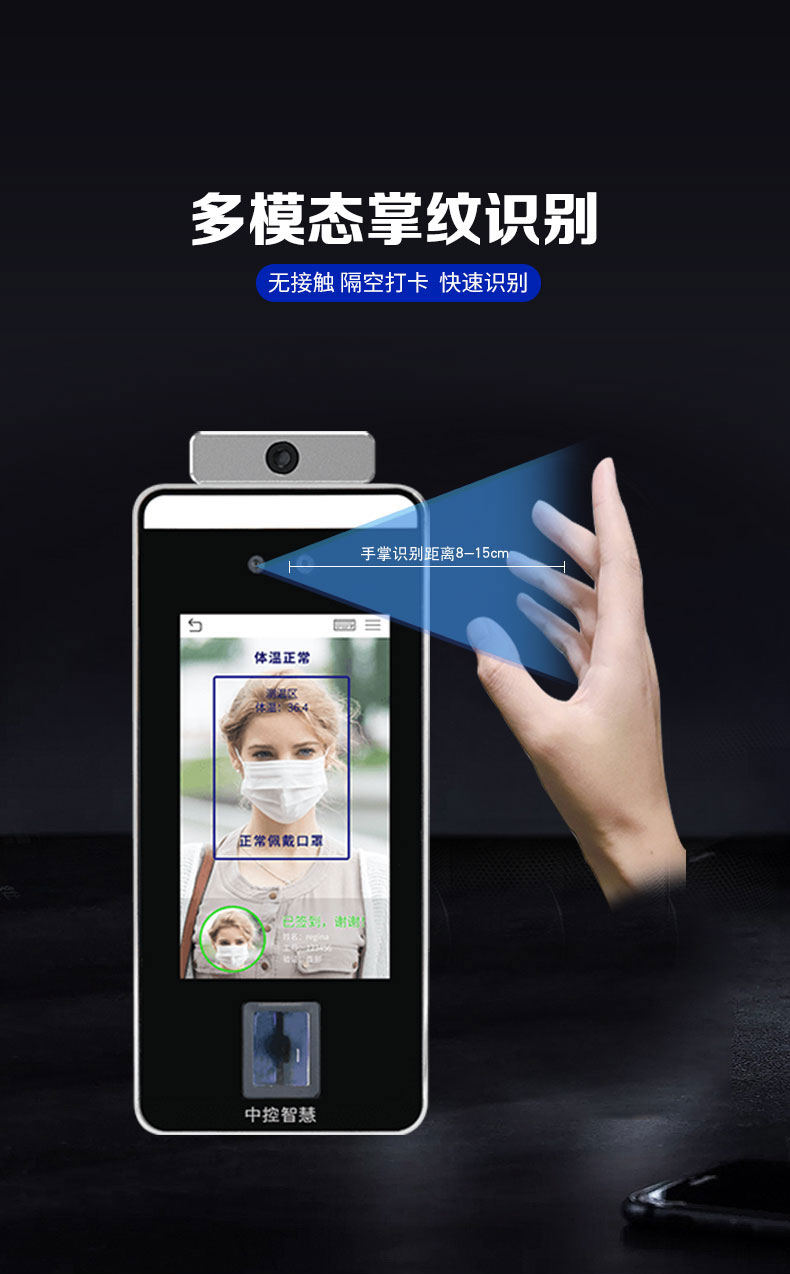 非接觸式掌紋門禁xface600plus是一款測溫門禁智能終端,搭載測溫模塊;選配WiFi導數(shù)據(jù) 非接觸式掌紋門禁xface600plus系列基于熵基科技深度學習算法,通過對人的掌紋或臉部、指紋特征信息實現(xiàn)快速身份識別,讓人們享受到更加安全、便捷、高效的通行體驗,推出的非接觸式混合生物識別終端。xFace600-Plus還搭載高性能紅外體溫檢測模塊,人員通行時即時檢測人表體溫并報警,提供更為安全、便捷、高效的通行體驗。另外,xFace600-Plus廣泛適用于社區(qū)、校園、醫(yī)院、景區(qū)、酒店、商場、寫字樓、公共服務(wù)場所等場景。